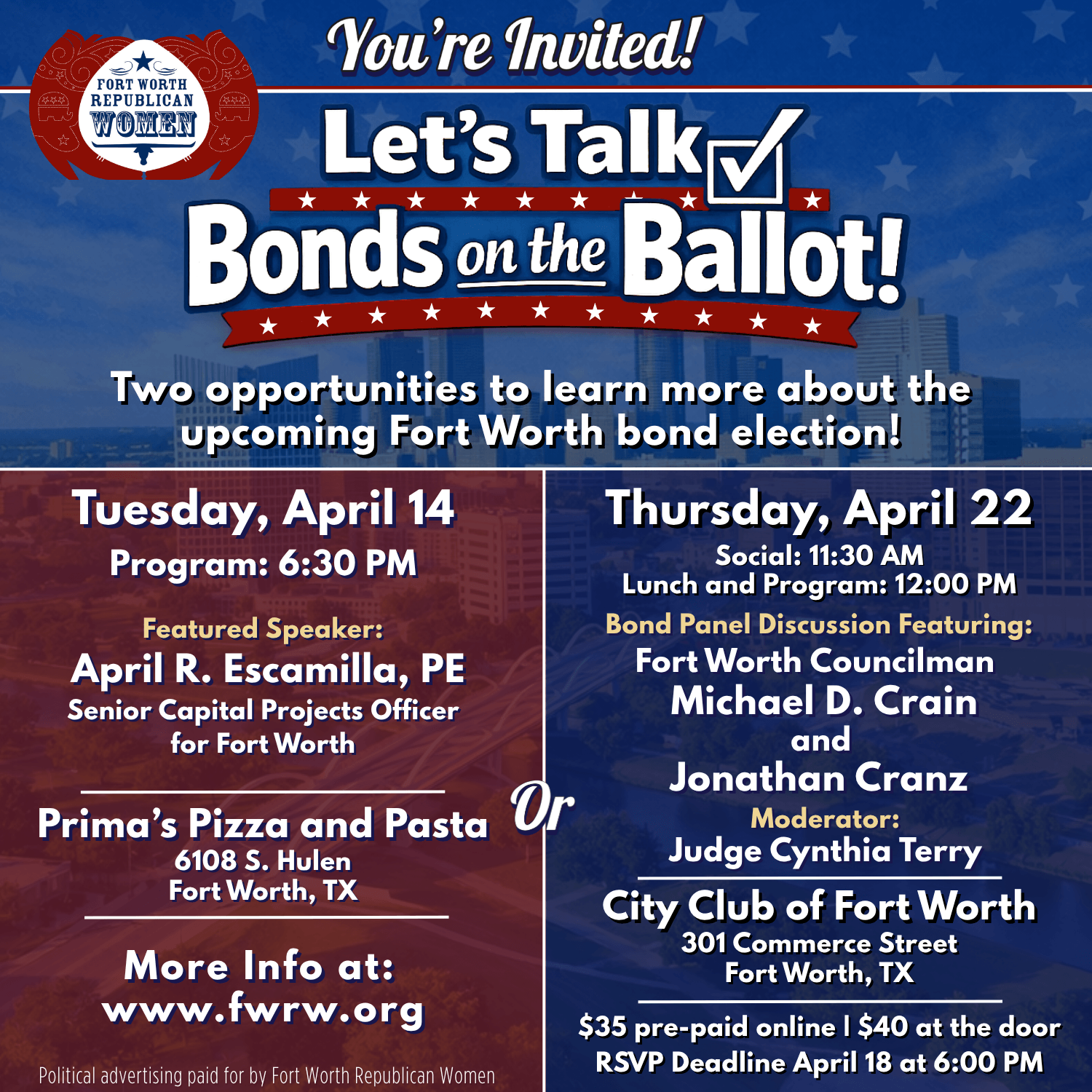 Join Fort Worth Councilman Michael D. Crain and Jonathan Cranz for an essential update on the upcoming Fort Worth Bond Election and new city ordinances.